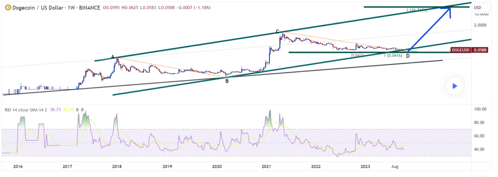 The analyst, known as AMINSHEYBANI, recently shared a chart on TradingView, aptly captioned “Doge to the moon.” Within this chart, a potential support level is hinted at, situated at $0.058. This could serve as the launchpad for an expansive surge that might ultimately culminate in a staggering $16 peak. This ambitious projection entails a remarkable 27,500% rally.